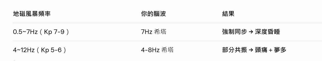 一般人:β波(14-30Hz)→ 地磁風暴影響 **輕微疲勞**