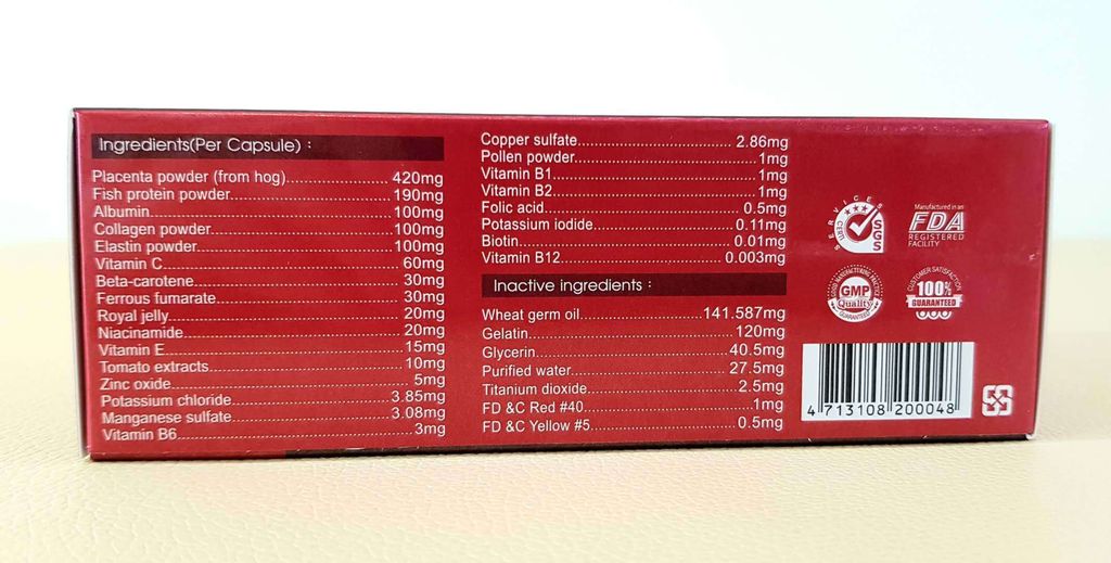 魚蛋白粉,花粉,膠原蛋白,彈力蛋白,綜合維生素,鋅,胡蘿蔔素,蜂王漿,葉酸等